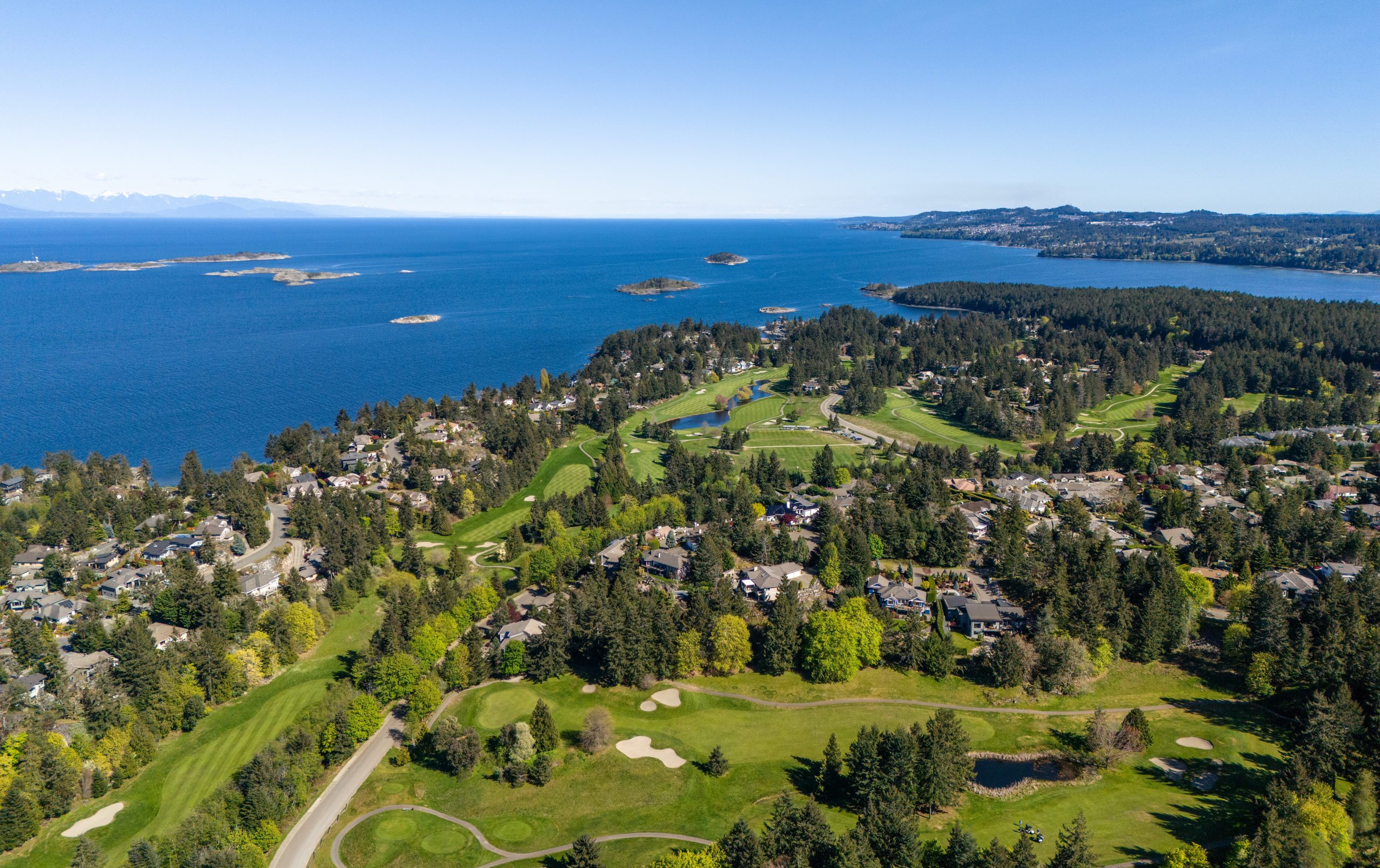 Bear Mountain Golf & Tennis Resort Community is home to Canada’s only 36 holes of Nickalus Design golf. It also boasts what is, arguably, one of Canada’s most scenic signature holes. Standing on the tee from Hole 14 on the Mountain Course, take a moment to take in the awe-inspiring beauty of the Strait of Juan de Fuca, the Olympic Mountain range, the city of Victoria, and Mt Baker towering in the distance over the green.